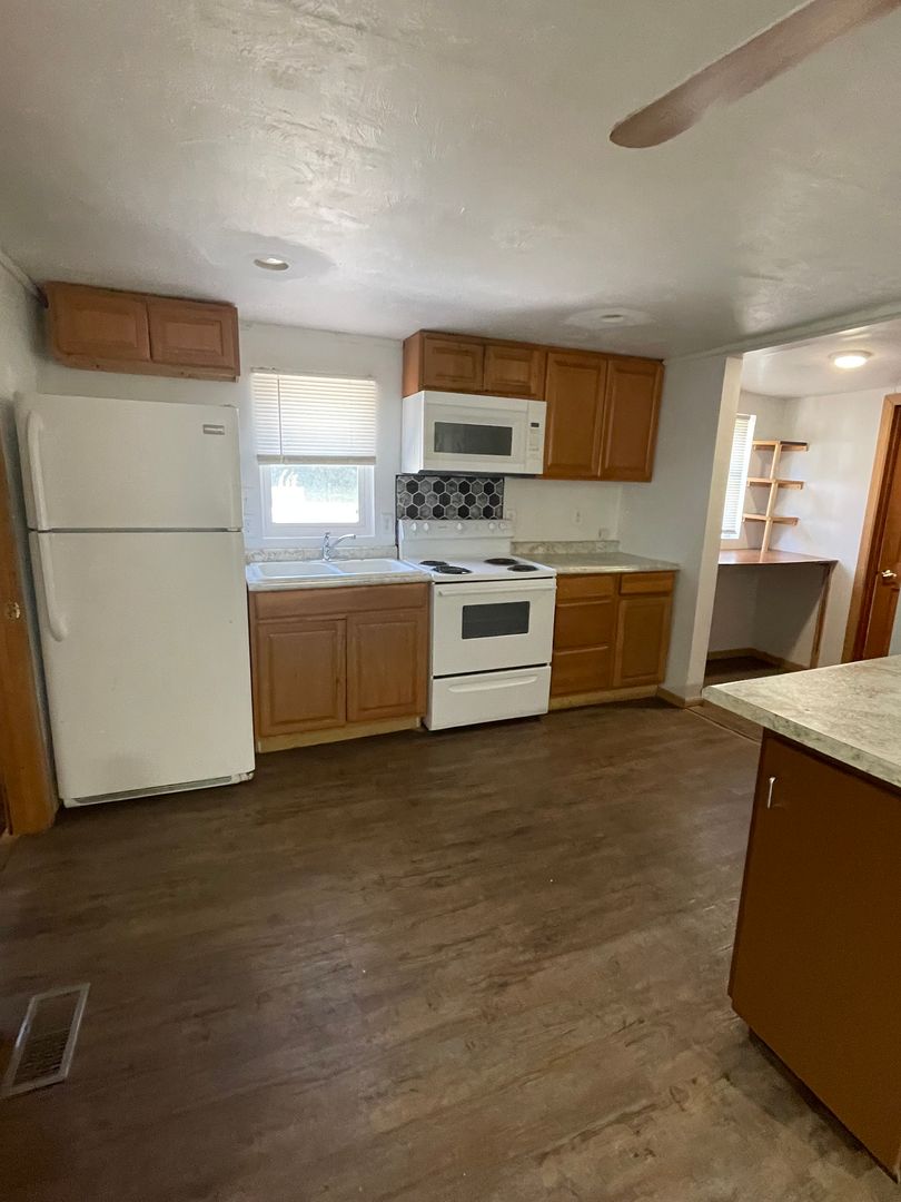Located just off of 11th Street close to Rivercrest Golf Course is this spacious 2 bedroom home! This house offers an open-concept kitchen, living and dining space, central air, a walk-out basement that leads to a concrete patio, detached 2-car garage, an extra storage shed, large yard, and much more! tenants are responsible for all utilities and lawncare. Give us a call today to schedule your showing! (765) 637-0208